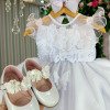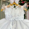Confeccionado em tecido misto possui forro em poliéster e algodão para não incomodar a criança e proporcionando um caimento incrível e sofisticado, possui gola redonda, comprimento médio, mangas curtas, possui elástico nas costas para melhor ajuste, acabamento com lindo laço na parte posterior do vestido completa o look dos sonhos! BATIZADO,DAMINHA,CASAMENTO,NOIVA,NOIVINHA,DAMA DE HONRA,FLORISTA,DAMA * Medidas podem variar em até 4cm. * Caso queira o vestido mais armado, recomendamos o uso do saiote ou anágua de armação, disponível no nosso site na categoria acessórios. * Tiara vendida separadamente, disponível em nosso site na categoria acessórios. * Calçados vendido separadamente, disponível em nosso site na categoria calçados. * LEMBRANDO QUE PODERA HAVER VARIAÇÃO DE TONALIDADE DO PRODUTO DEPENDENDO DA TELA DO SEU DISPOSITIVO